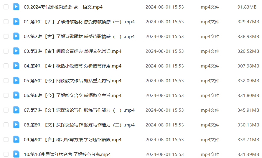 课程名称: 2024马欣马昕高一语文下学期寒假班+春季班