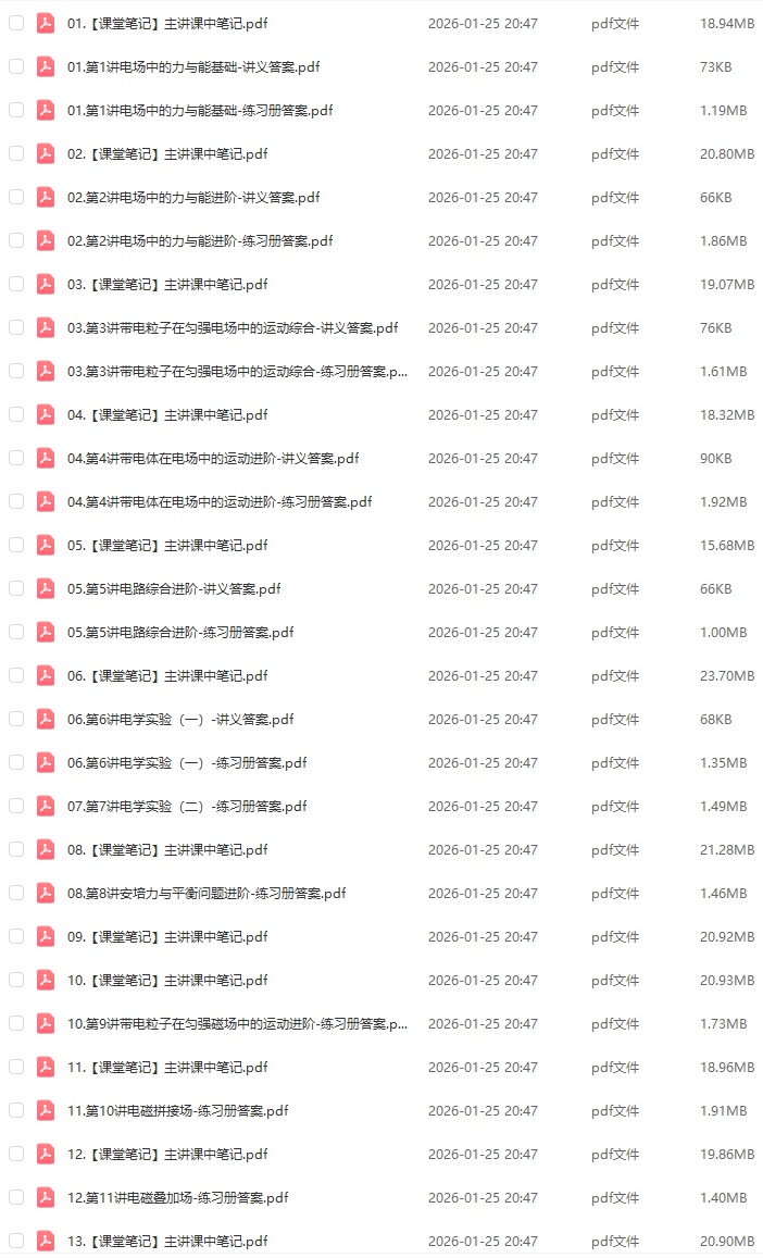 教学课程:2026龚昱晗高二物理a上学期秋季班视频教程+课堂笔记(课程持续同步更新中,已购课程包含更新至完结,无需二次付费)