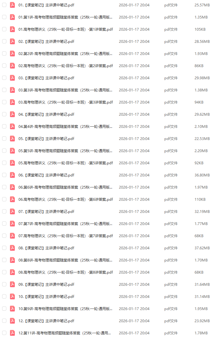 教学课程:2026年郑梦瑶高三物理a一轮复习秋季班视频教程+课堂笔记