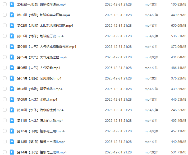 教学课程:2026年周欣高一地理上学期秋季班视频教程