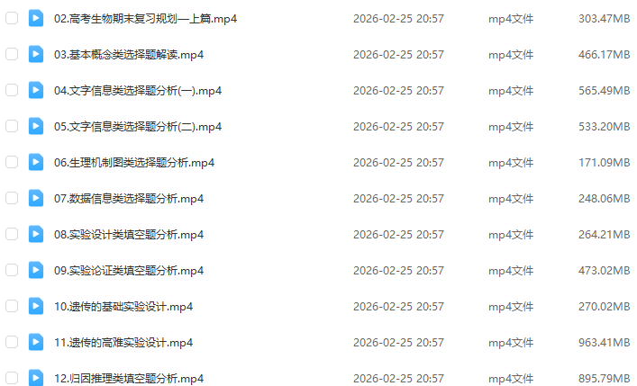教学课程:2026年高考万猛高三生物二轮复习寒假班知识视频+规划服务直播课