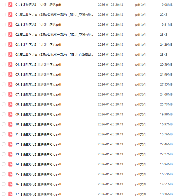 教学课程:2026田夏林高二数学a+上学期暑假班+秋季班视频教程+课堂笔记教学课程