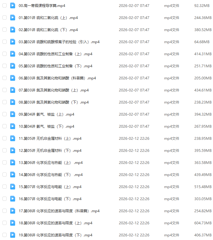 教学课程:2026年李政高一化学下学期寒假班视频教程+讲义资料教学课程