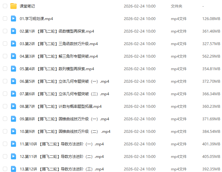 教学课程:2026刘天麒高三数学a+二轮复习寒假班视频教程+课堂笔记网课教程