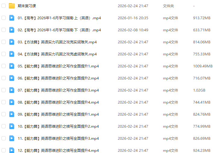 教学课程:2026年高考李辉高三英语二轮复习寒假班知识视频+规划服务直播课
