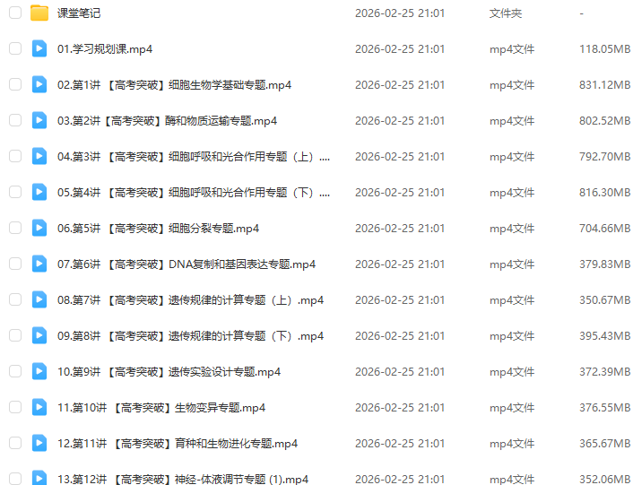 教学课程:2026年邓康尧高三生物a+二轮复习寒假班视频教程+课堂笔记