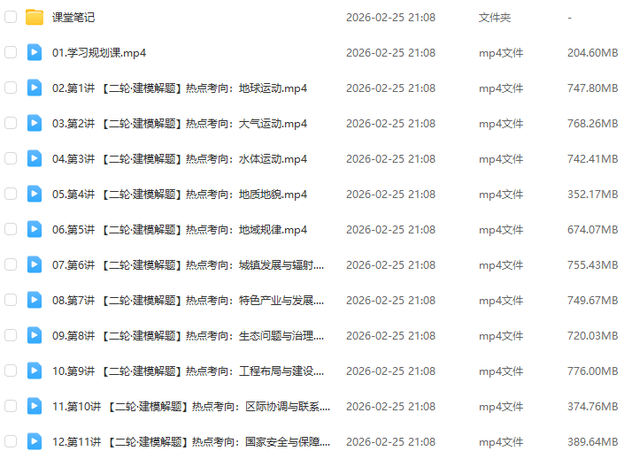 教学课程:2026年王群高三地理二轮复习寒假班视频教程+课堂笔记教学网课