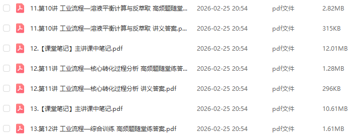 │ ├─ 11.第10讲 工业流程—溶液平衡计算与反萃取 讲义答案.pdf